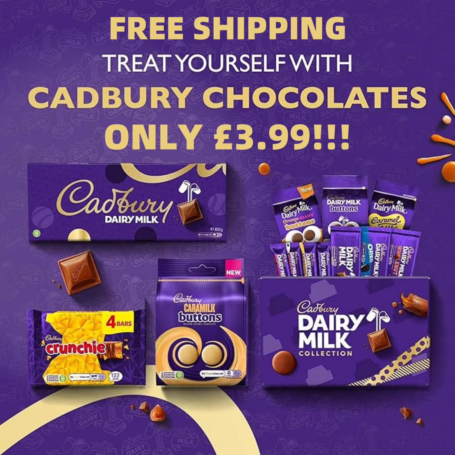 Includes Cadbury Dairy Milk, Crunchie, Caramilk Buttons, and Dairy Milk Collection—individually wrapped and with free shipping! Grab yours now and share the sweetness! 🛒💖