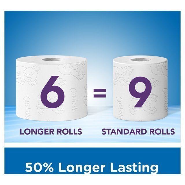 Cushelle Original Toilet Tissue 6 x 50% Longer Lasting Rolls*. Cushelle Original is made with Micro Air pockets that make it ooh sooo soft and highly absorbent for a comfortable clean feeling every time. Now longer rolls. so if it seems like it’s lasting longer. that’s because it is! Use with Cushelle Fresh Toilet Wipes for a fresher. cleaner feeling. *50% Longer Lasting Rolls. compared to standard rolls. 6 Original Toilet Tissue Rolls. 270 sheets per roll