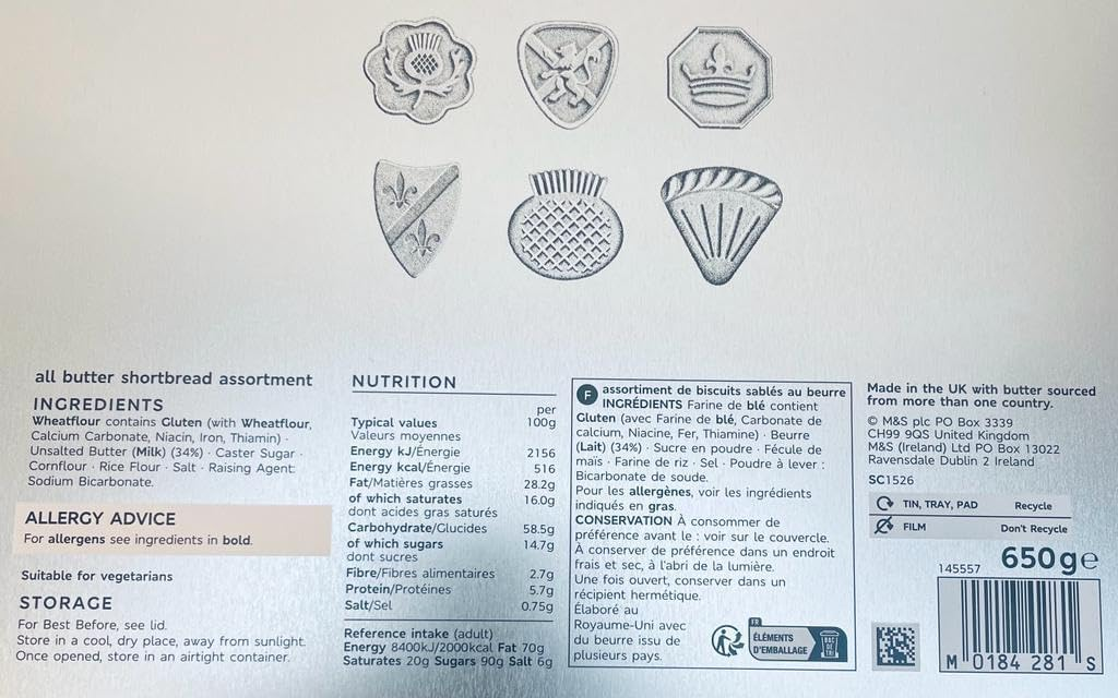 Generic M&S All Butter Shortbread – Petticoat Tails Tin 650g – in a Premier Life Store Box