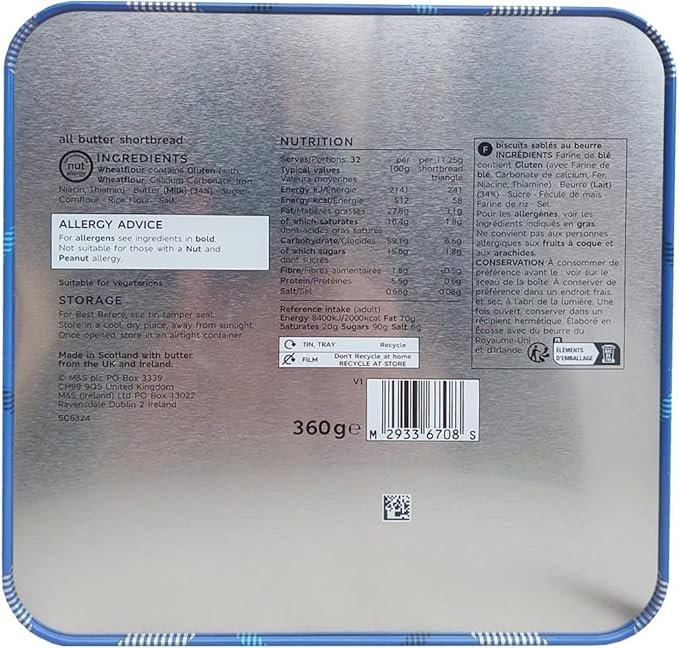 Each Petticoat Tails shortbread is crafted with premium butter, delivering a rich, buttery taste and crisp texture. This classic 650g tin showcases the exceptional quality of M&S and is elegantly packaged in a Premier Life Store gift box, making it perfect for festive celebrations or special